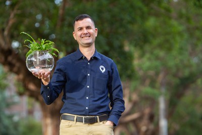 His design for a simple but stylish, self-watering glass plant pot has won design accolades and helped build a wholesale business that generates a steady/increasing annual revenue. Like the plants, he’s working on further growth.