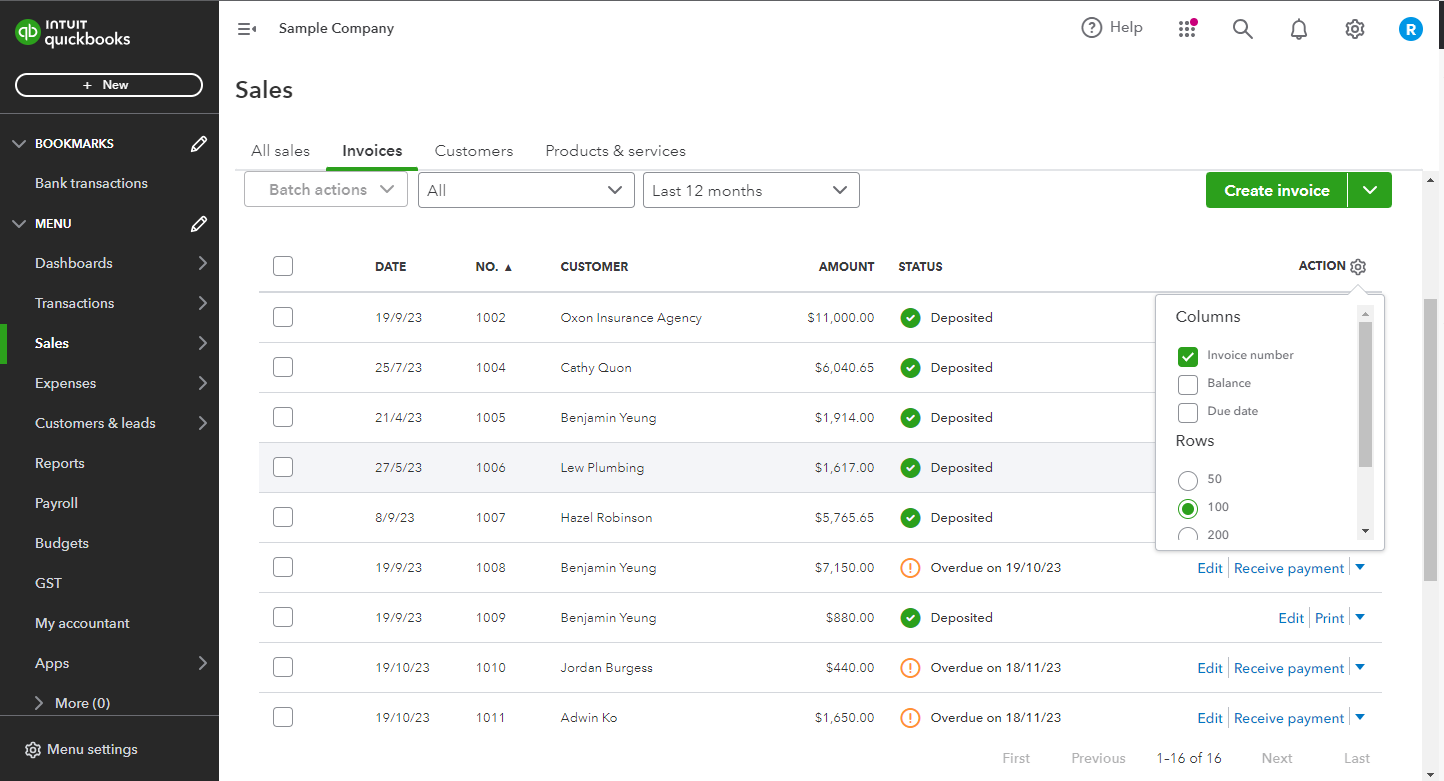 Also, you should turn on the Custom transaction numbers in the Account and Settings, then Sales. Never forget to Save, then Done. Check out the screenshot below: