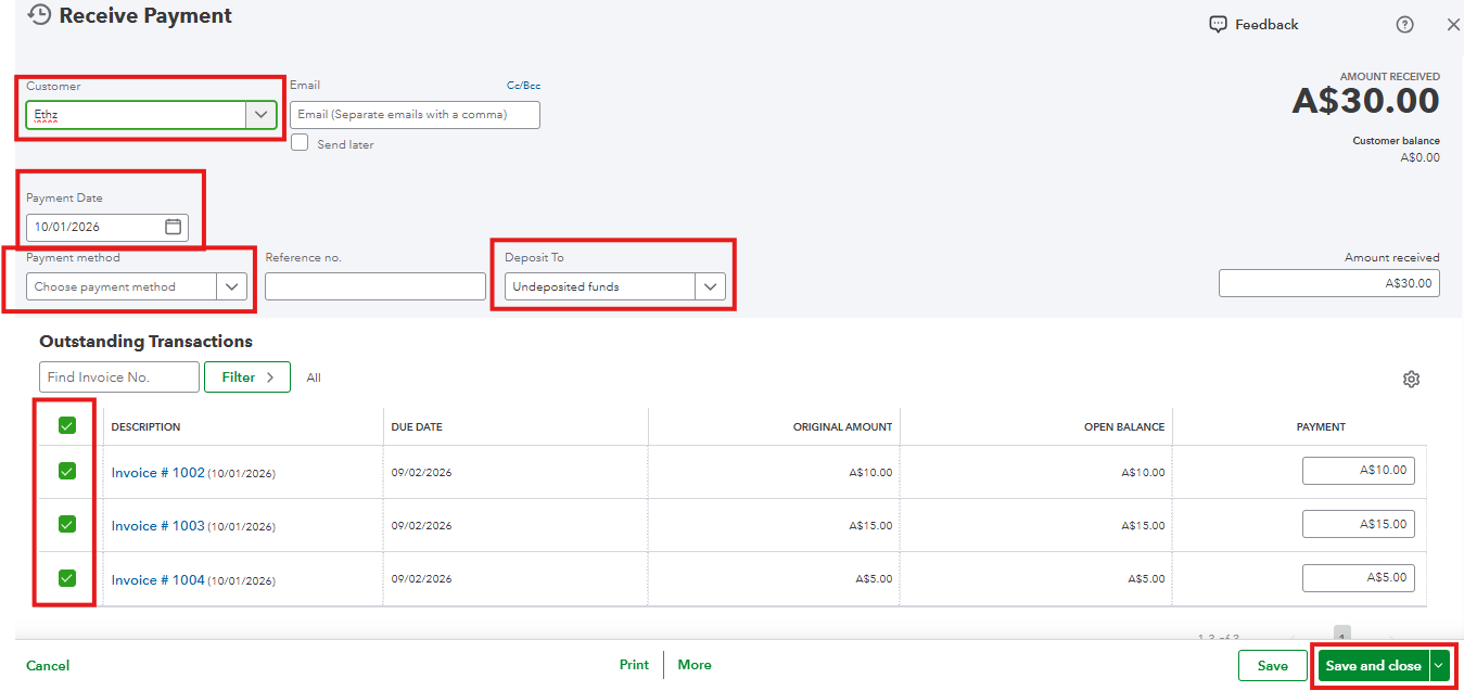 This way, the invoices are marked paid, the bank transaction is matched, and reconciliation stays accurate, with no duplicates or double-counting.
