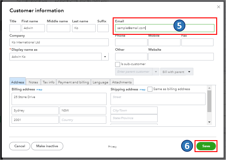 When you add a customer to QBO, you're able to enter the email address they have. With this, any sales transactions you create for them will automatically be sent to the email you've indicated in their profile. To register your customer's email address or update one, you'll have to visit their profile. Let me guide you how.