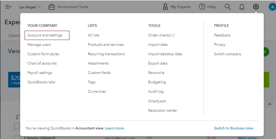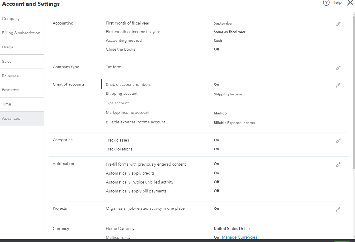 First, let's make sure that your account codes are enabled from the Accounts and Settings window.