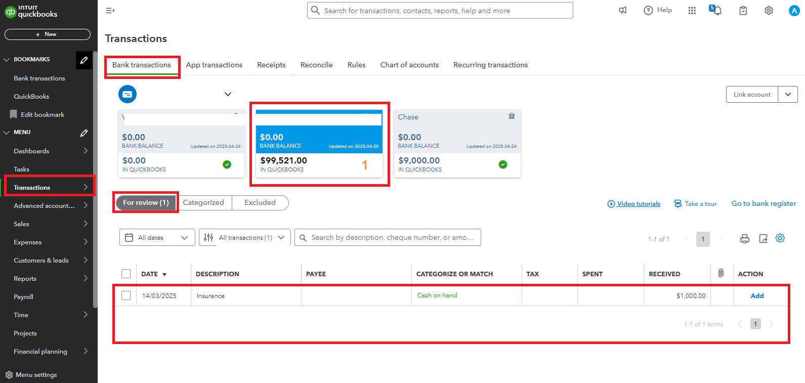 Les transactions catégorisées ne sont pas visibles car elles ne sont pas encore catégorisées ou ont été annulées, ce qui les empêche de figurer dans votre liste, comptabilite9.