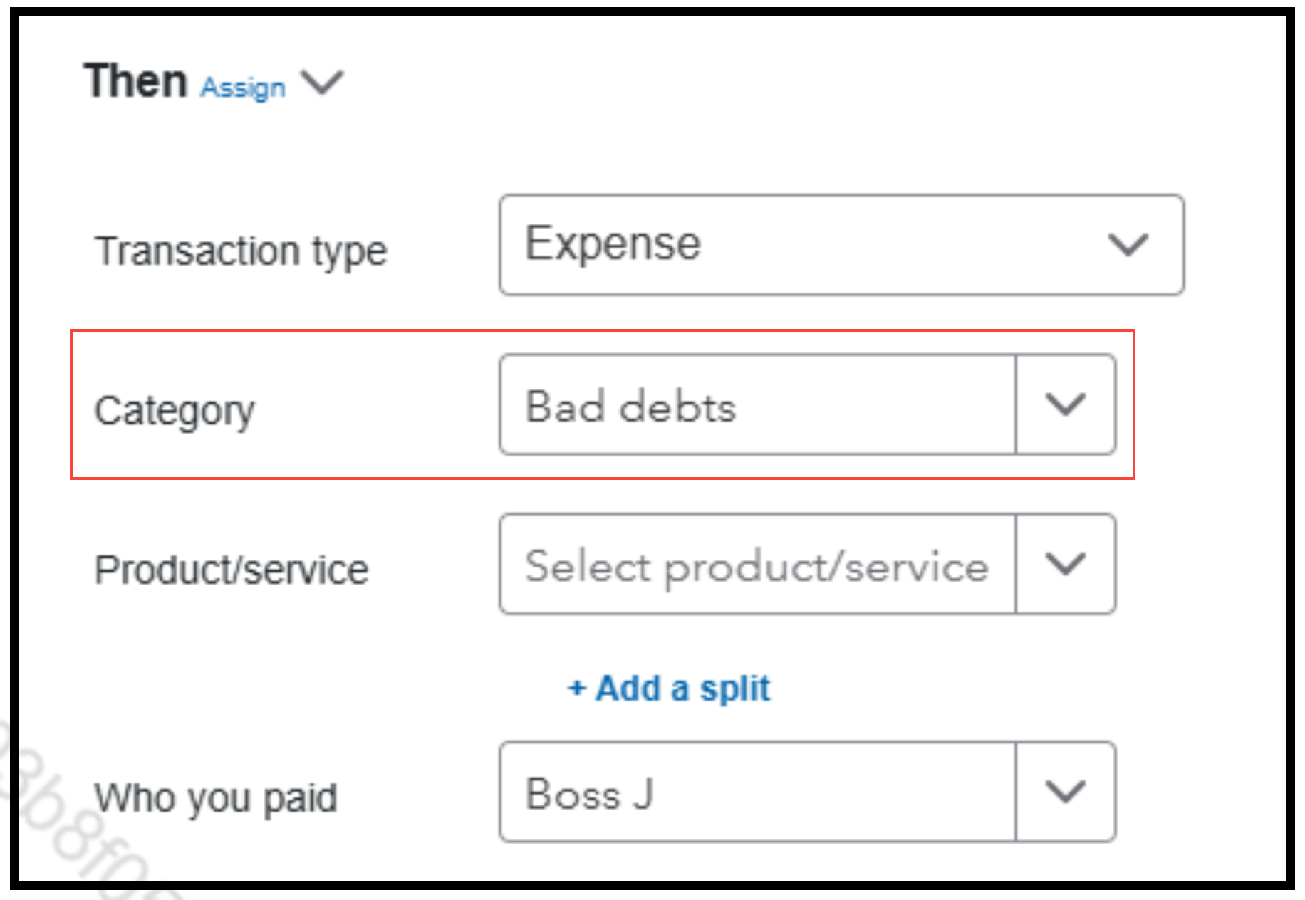 - From there, hover over Category and click the dropdown arrow next to it, then select the correct account.