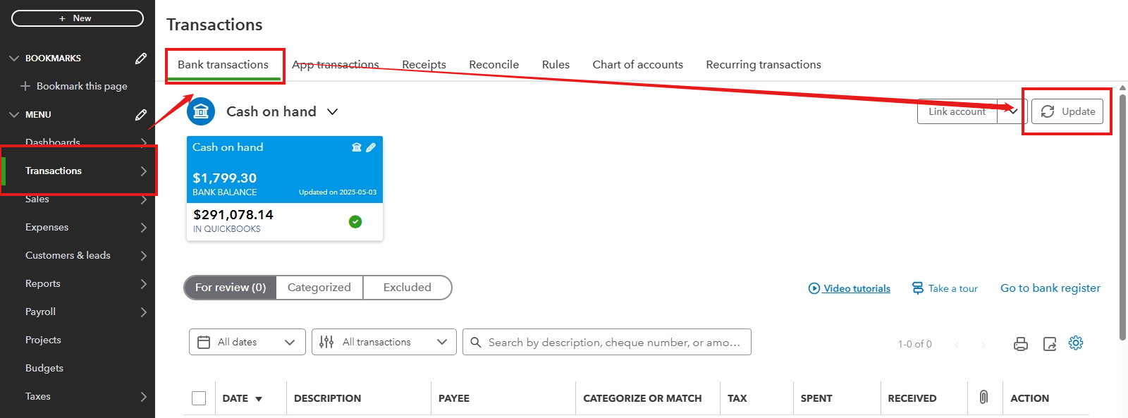 If no transactions are showing, you can perform a manual update to refresh the transactions across all of your accounts. Here’s how: