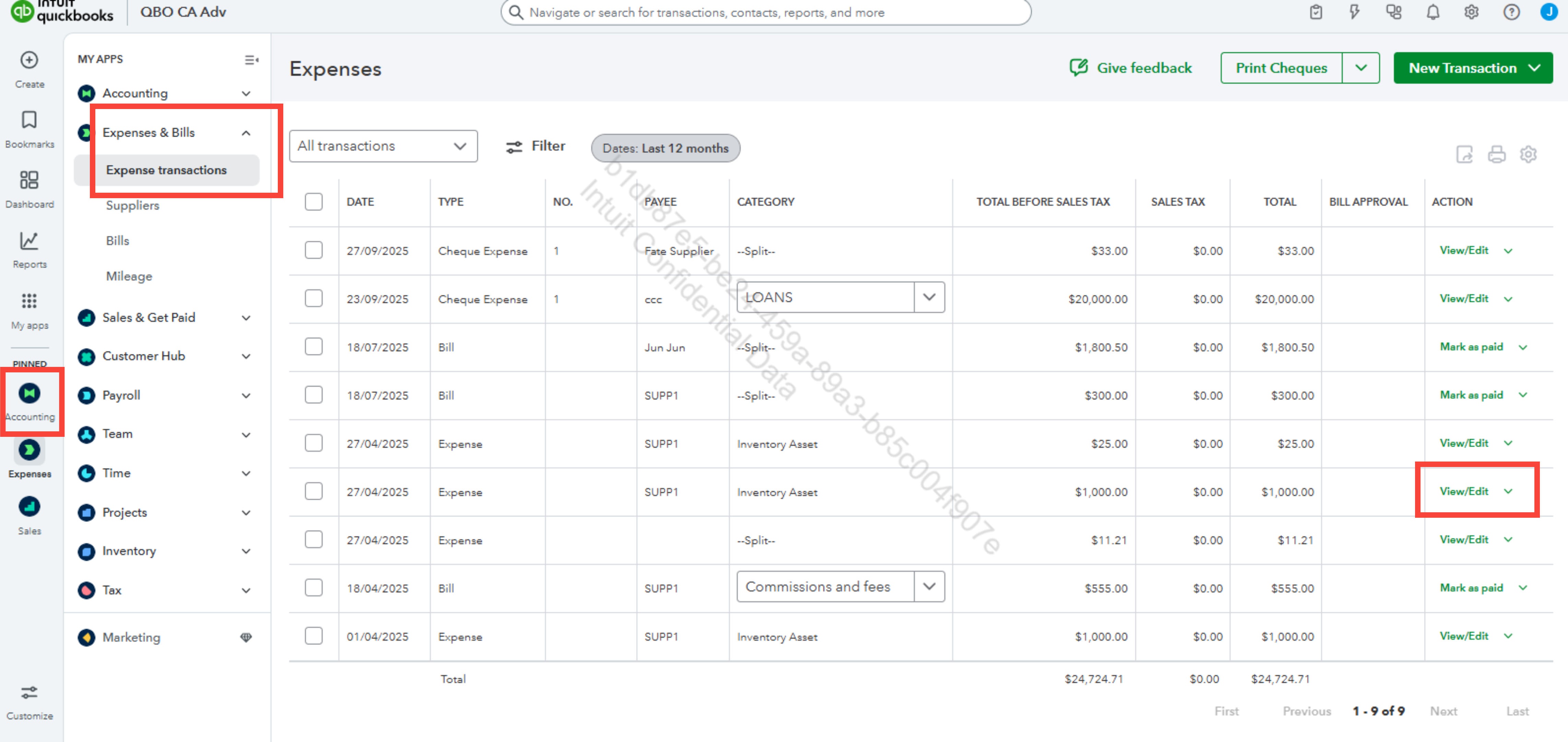 - Go to Accounting and click the drop-down arrow next to Expenses & Bills.