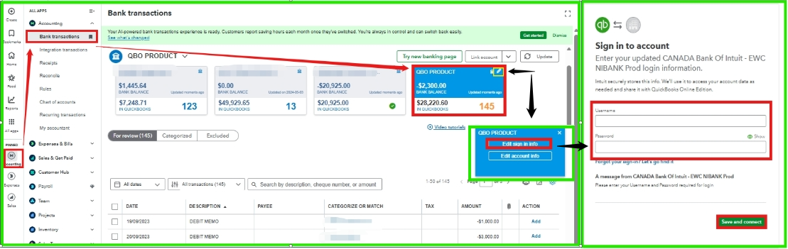 Once you've updated your bank details, follow these steps to ensure the information is synced in QuickBooks: