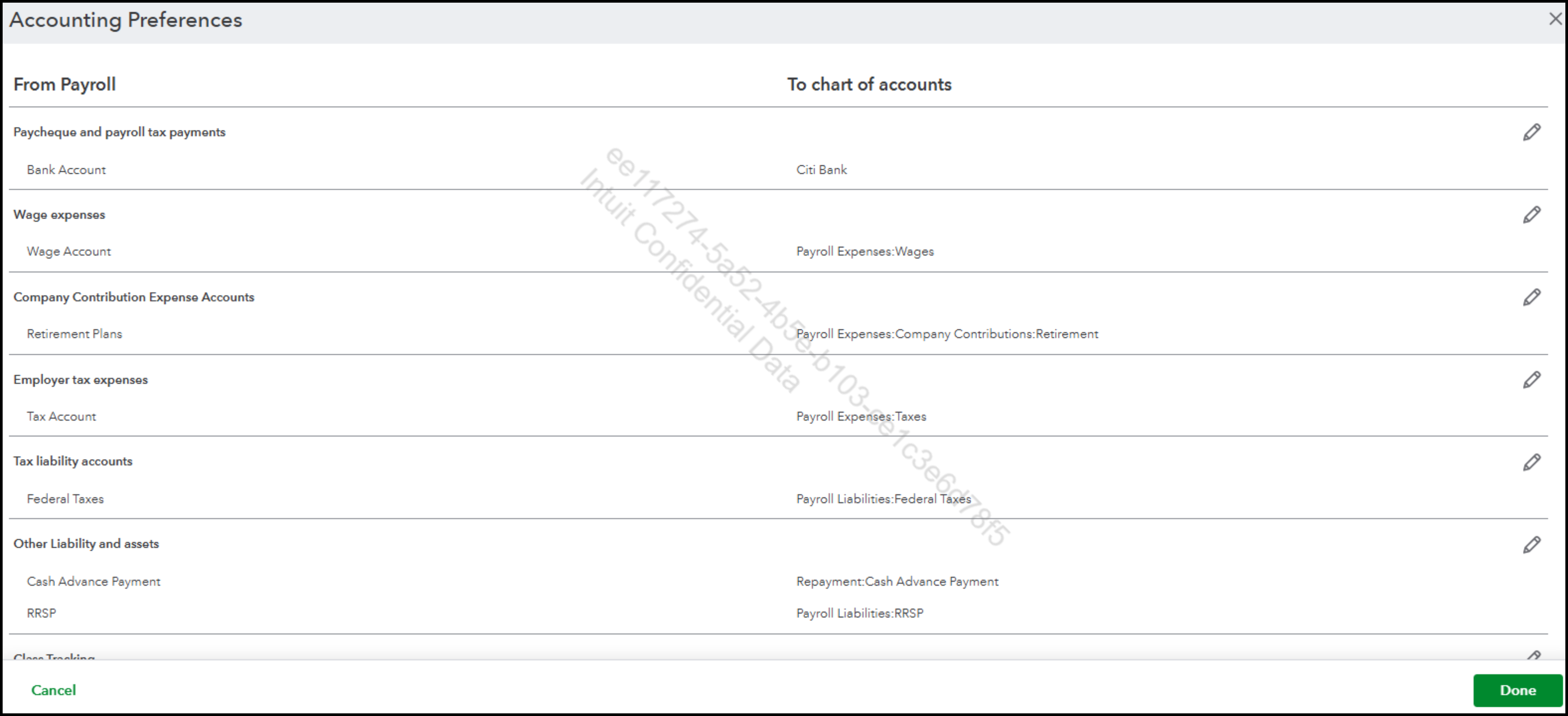 - On the Accounting preferences page, ensure each payroll category (such as salaries, deductions, and taxes) is assigned to its corresponding account in the chart of accounts correctly.