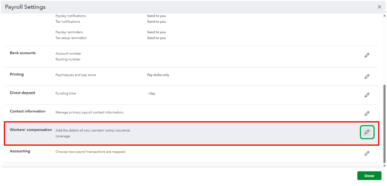- Edit the Workers' Compensation by clicking the pencil icon next to it.