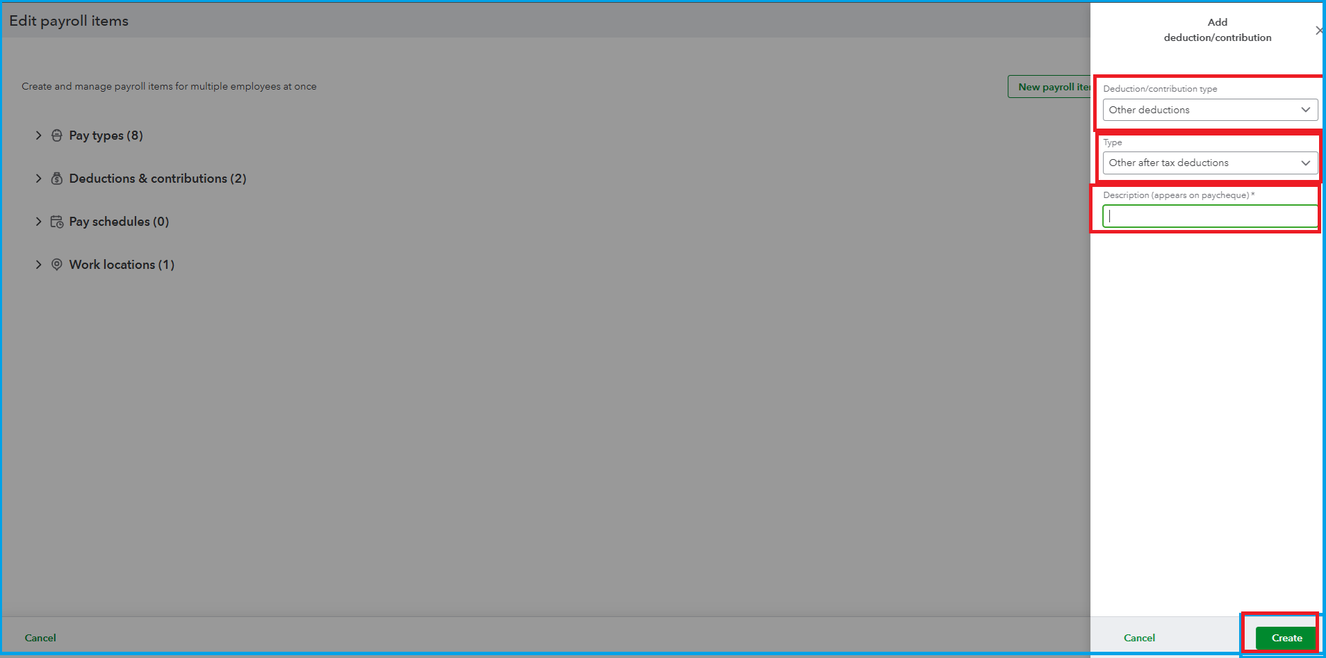 To handle after-tax deductions like employee repayments, you can create a New Payroll item and map it to a specific account. Here's how: