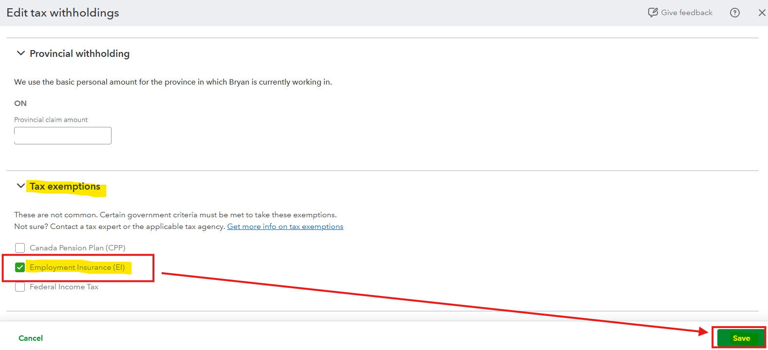 Hello, Office331. Since the employee is exempt from Employment Insurance (EI), we need to update their payroll setup to prevent future discrepancies in their paychecks.
