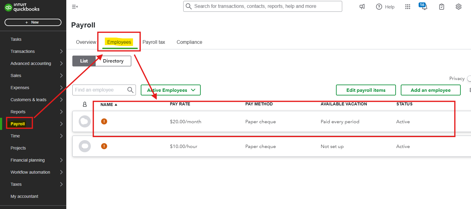 - Go to Payroll, then select the Employee.