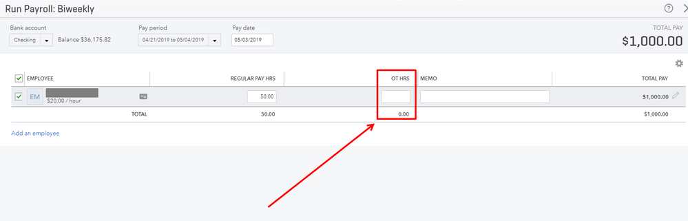 Once done, a field for overtime hours will reflect when you run payroll.