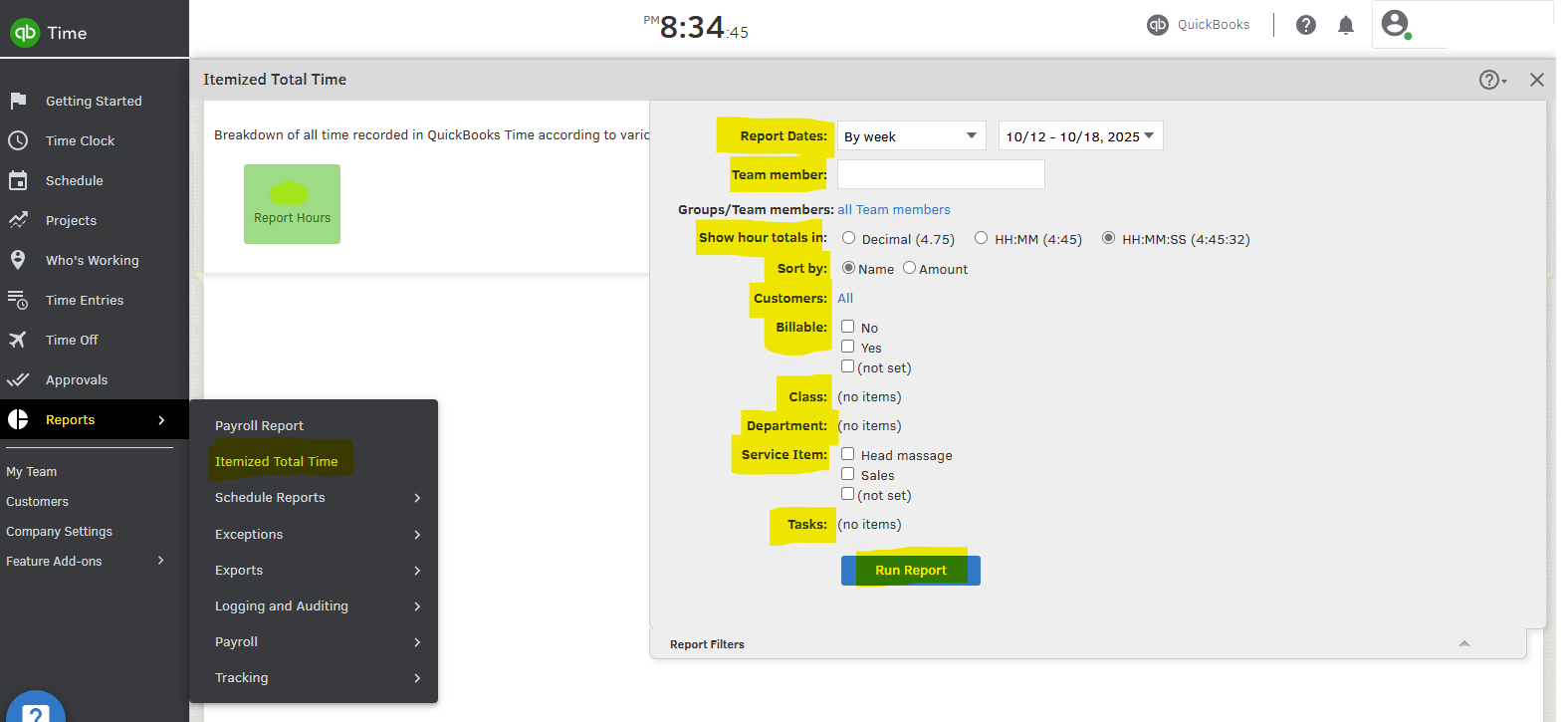 If you use QuickBooks Time, you can access the Itemized Total Time report, which shows the total hours tracked for each job or customer along with the team members who worked on them. Here's how: