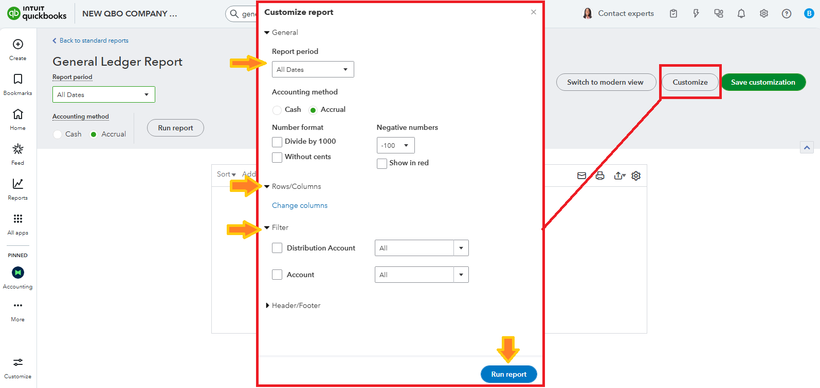 Follow these instructions to view the General Ledger report: