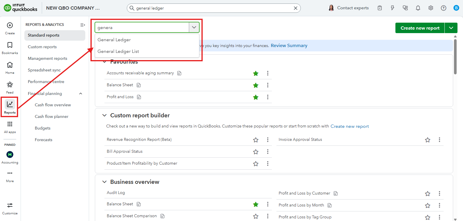 - Select the General Ledger to open the report.
