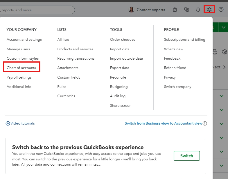 3. Find the account where the incorrect transactions were recorded and click Account history next to the account.