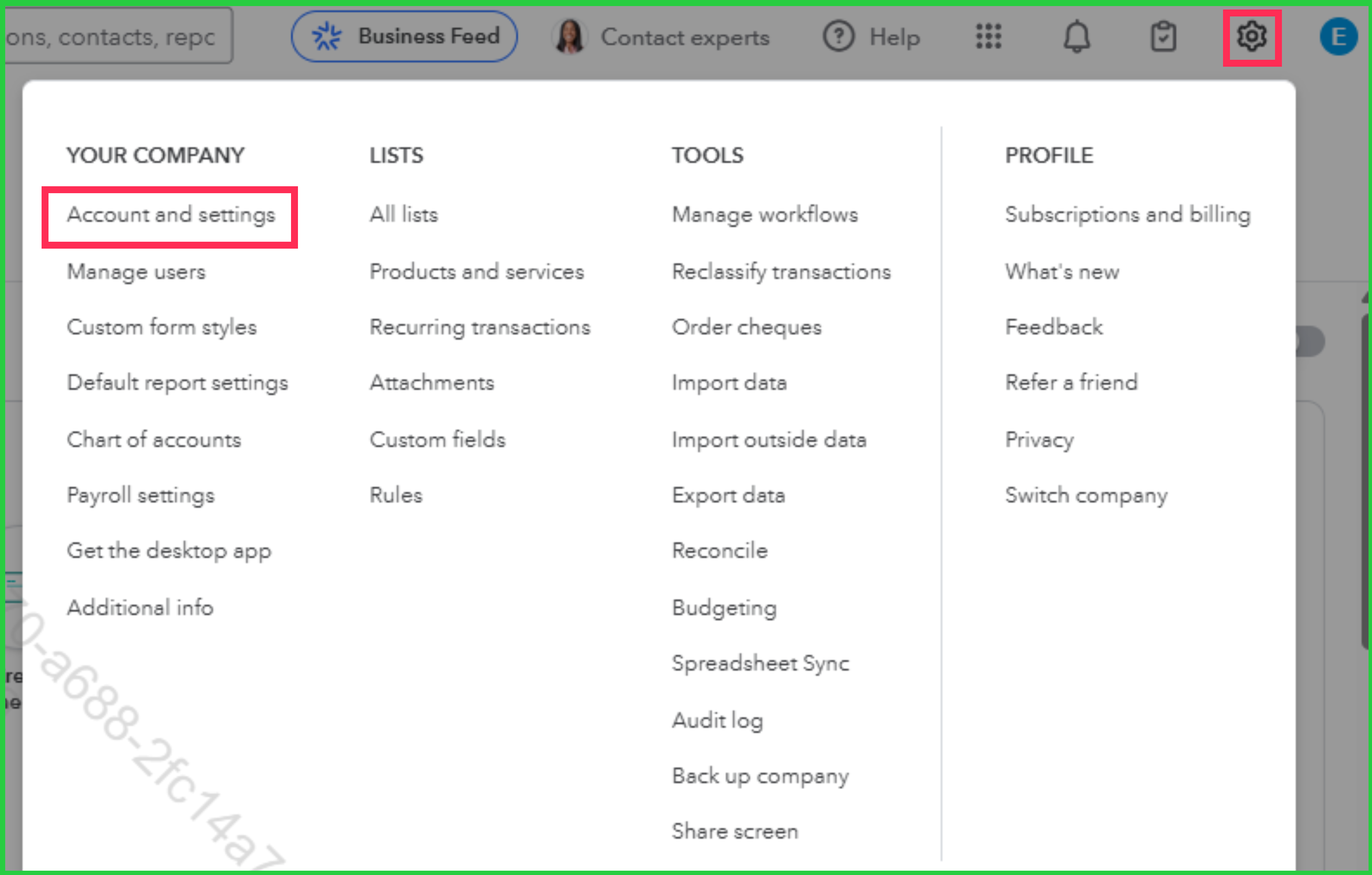 - Go to the Gear icon, then select Account and settings.