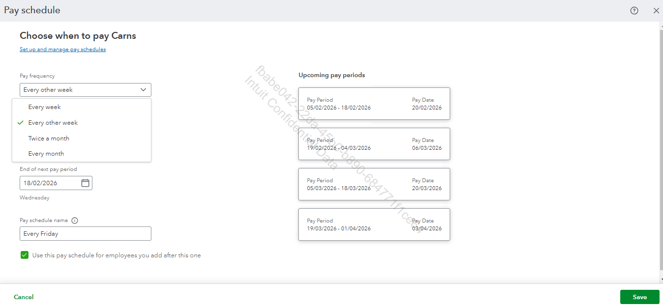 - Change the Pay frequency from Weekly to Bi-weekly or Every other week.