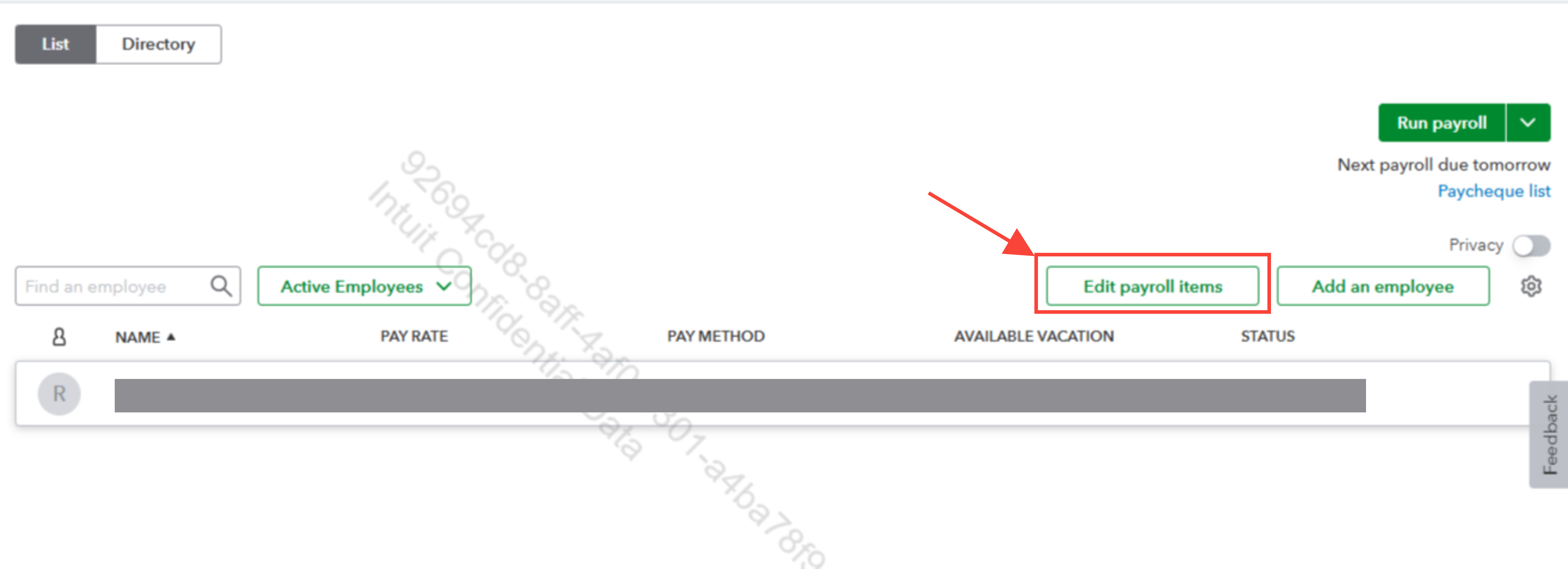 2. Click the Edit payroll items button.