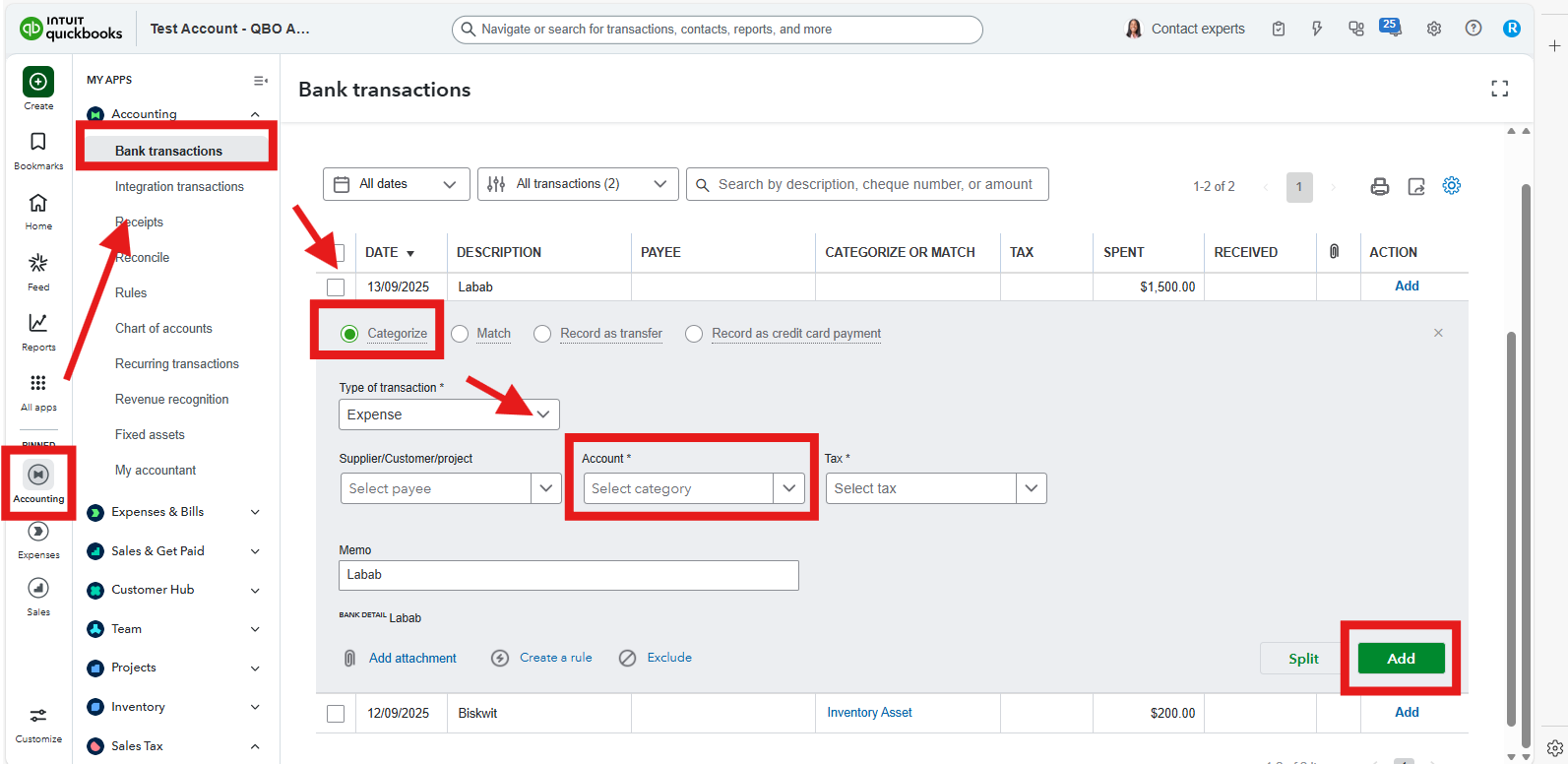 - Navigate to Bank transactions under the Accounting menu.