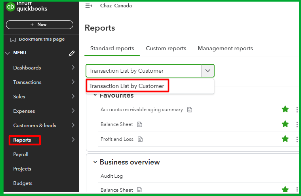 - Go to the Reports menu in the left panel.