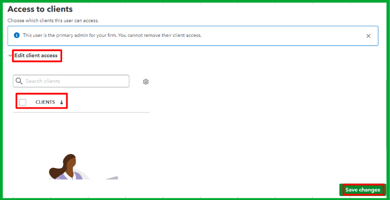 - Choose or uncheck the client names checkboxes to grant or deny bookkeeping access for this team member.