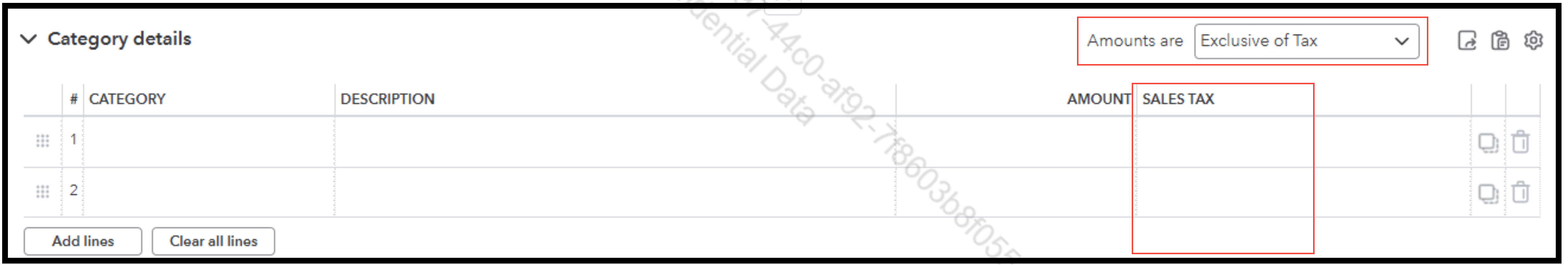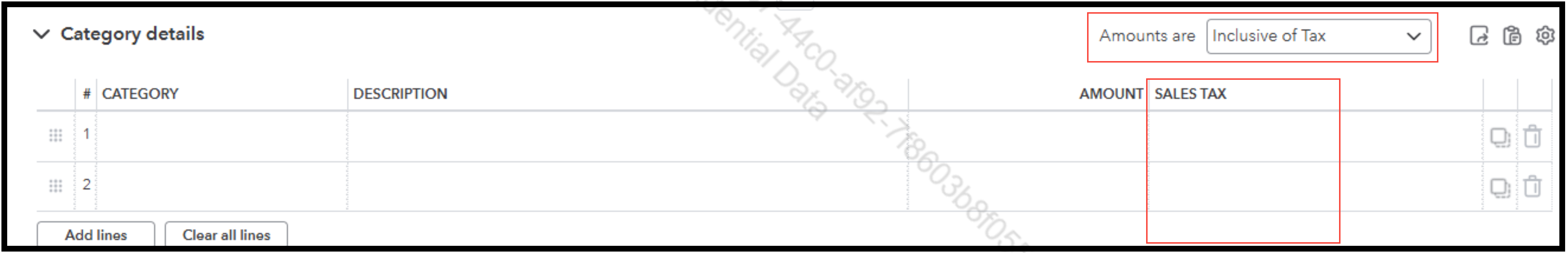 Hi there, Morgan. The sales tax column won't be available if your bill is set to Out of Scope of Tax. To view the sales tax column, please ensure your bill is set to Exclusive or Inclusive of Tax. This will allow you to select a specific sales tax rate.