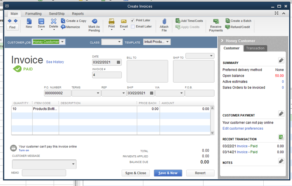 I am wondering if we could create an Invoice with 0 balance and still find it at Income Tracker without payment.