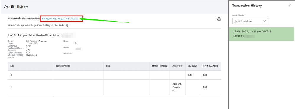 Now, let's remove the applied credit to correct the transaction by clicking the linked transaction inside the Audit History. Here's how: