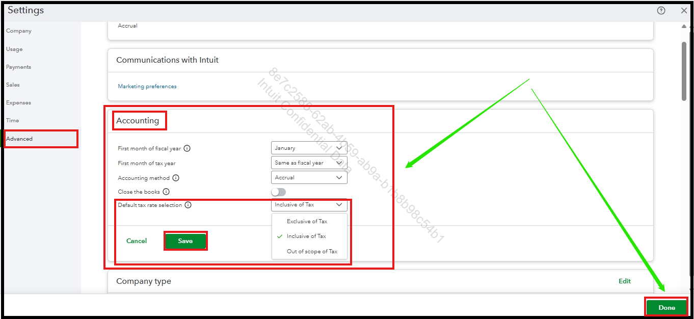 2. Navigate to the Advanced tab in the left-hand menu and locate the Accounting section.