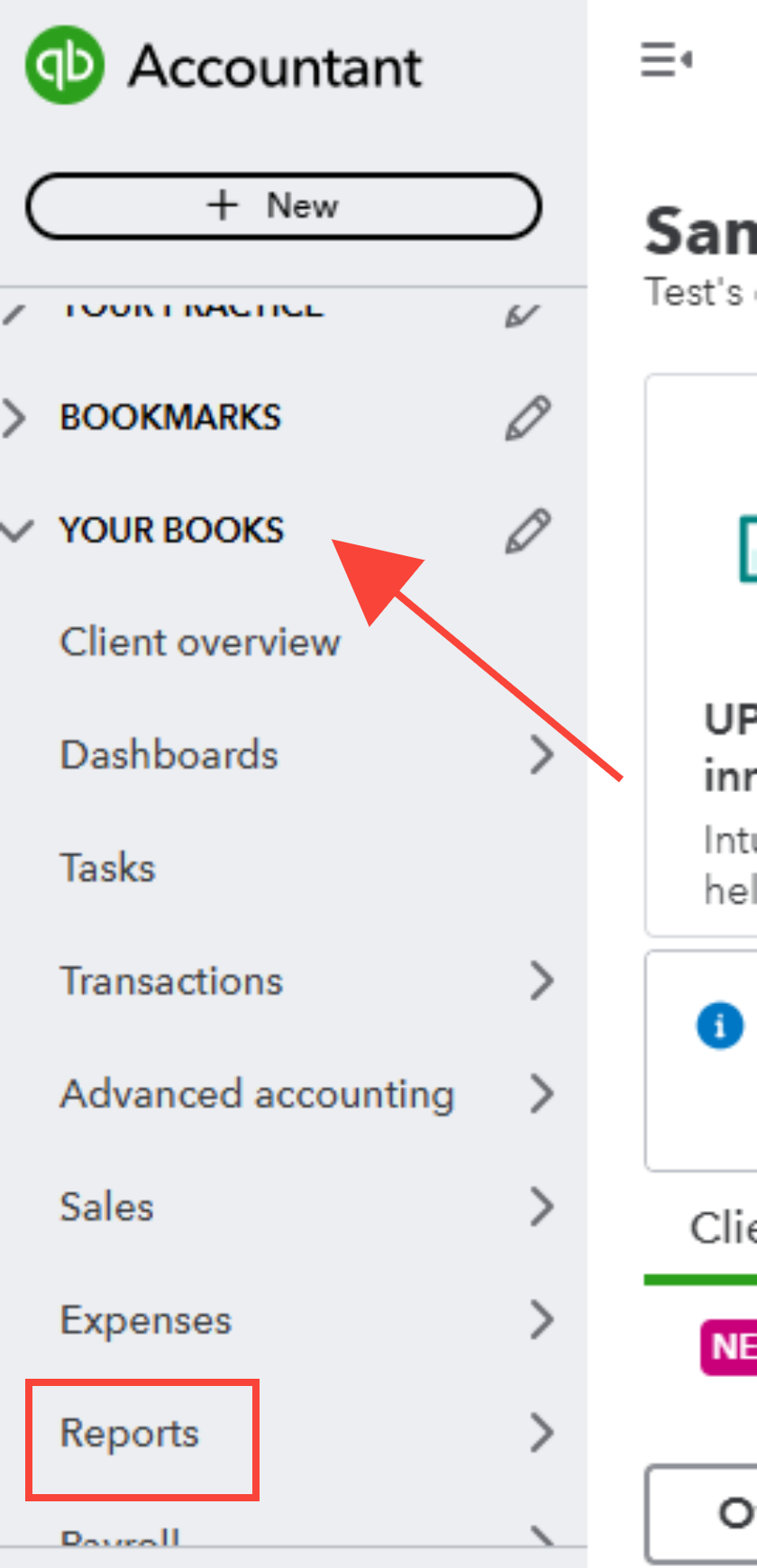 - Confirm that you have accountant, admin, or a role that has access to Reports.