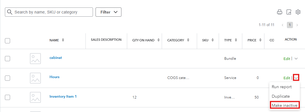 The services you imported are currently active in QuickBooks Online, which is why they are appearing in the Products and Services report and in the dropdown menu when you're creating a sales invoice. I'll walk you through the steps to remove them from the report.