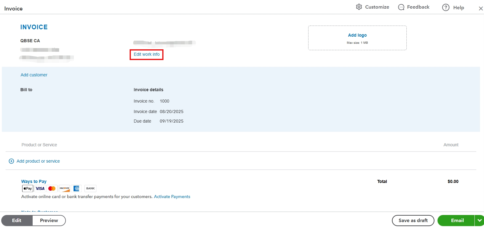 Yes, you can change the address shown on your invoices by editing your work info, Haifa.