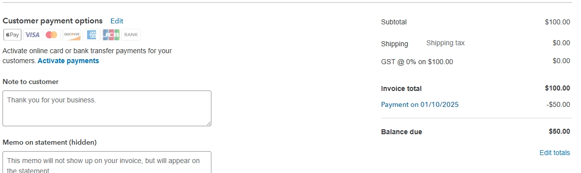 - Open an existing invoice.