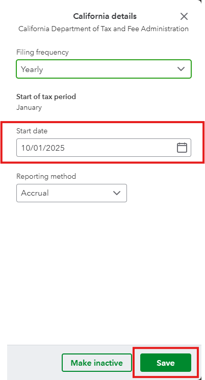 If you also want to change the Filing frequency section, please note that this frequency is determined by the Canada Revenue Agency (CRA). If you'd like to change the filing frequency for your business, you'll have to get permission from the CRA. You can refer to this article for more information: Change sales tax filing frequency in QuickBooks Online.