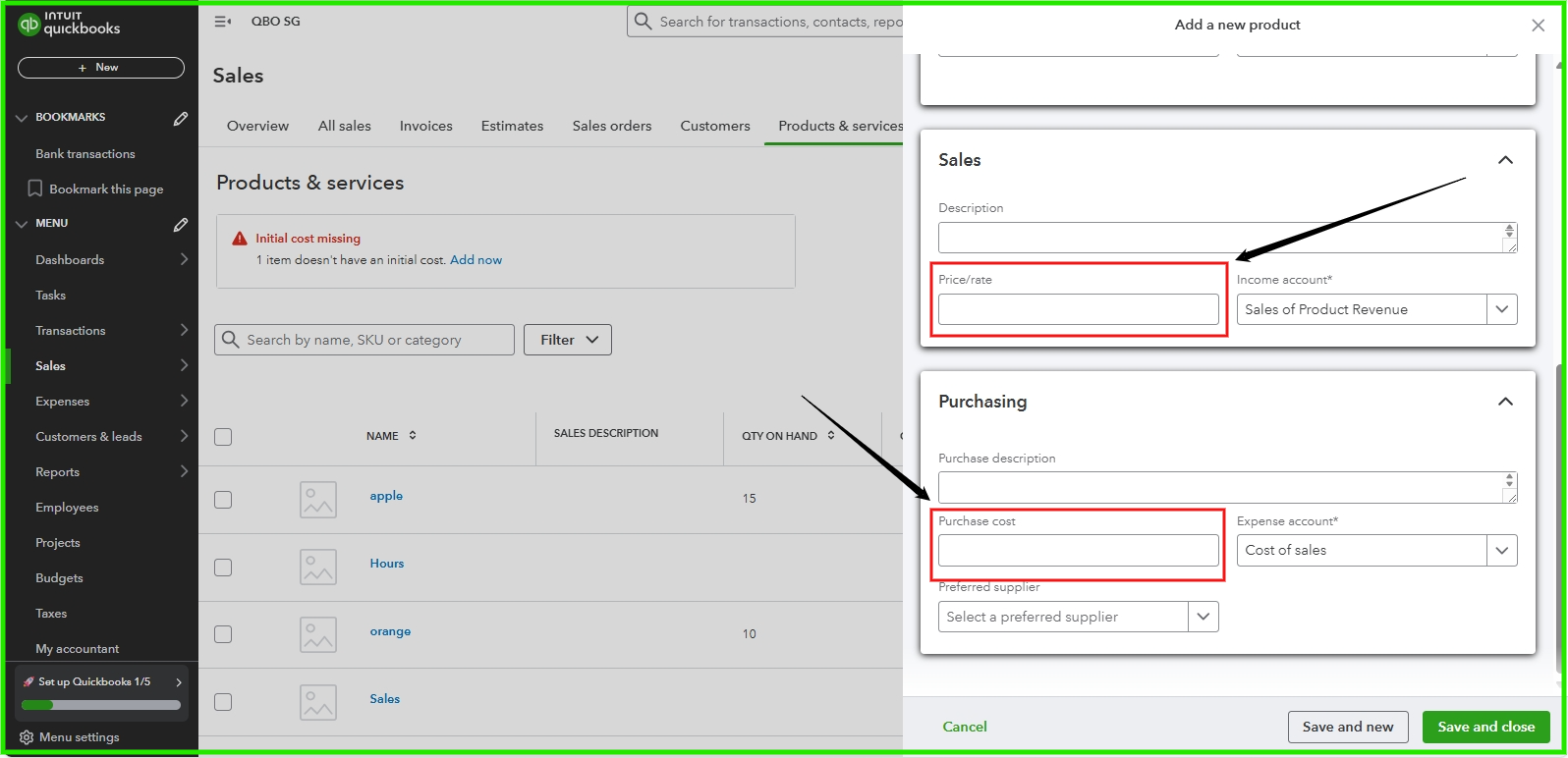 Let's double-check the setup of your products and services to ensure you have included the pricing for both sales and purchase costs, Karen.