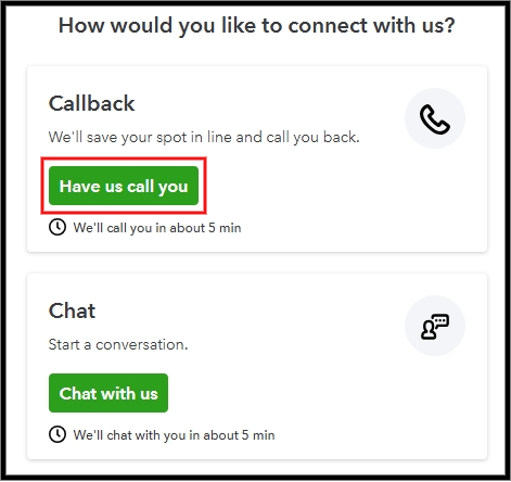 - Select Continue, follow the instructions, and click the Have us call you button.