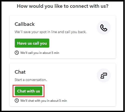 - Select Continue, follow the instructions, and click the Chat with us button.