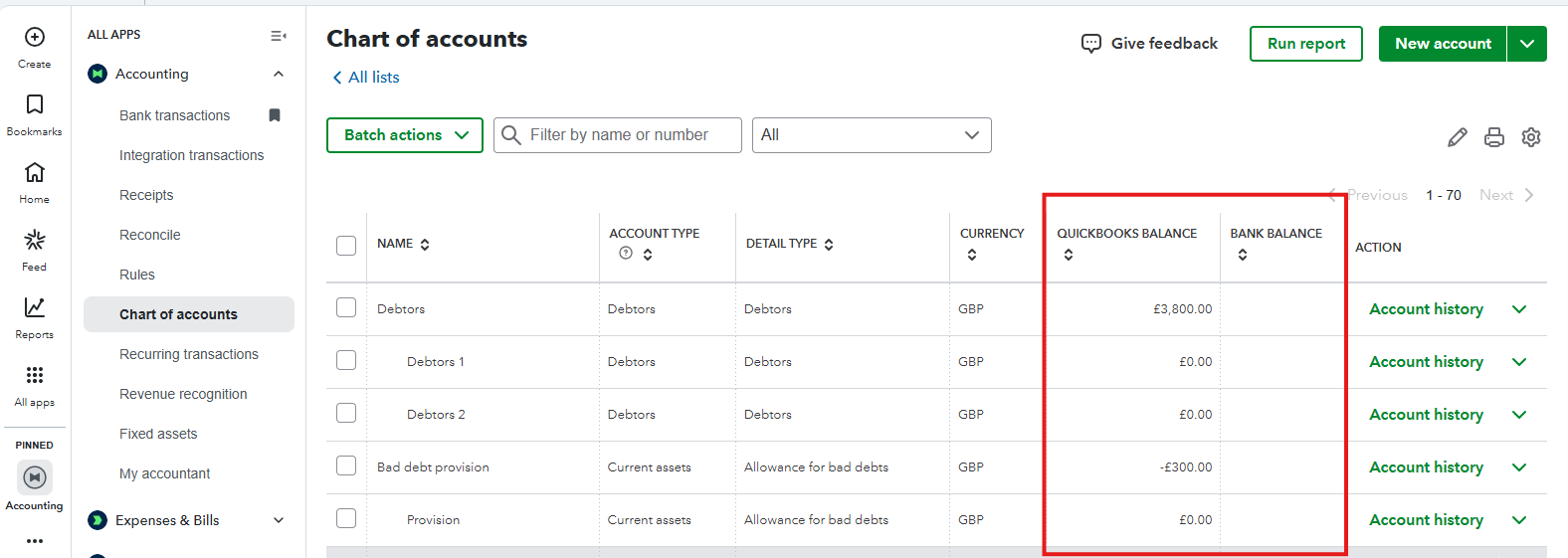 However, you can still easily view your QuickBooks Balance alongside your Bank Balance on the Chart of accounts page, where they are displayed in separate columns.