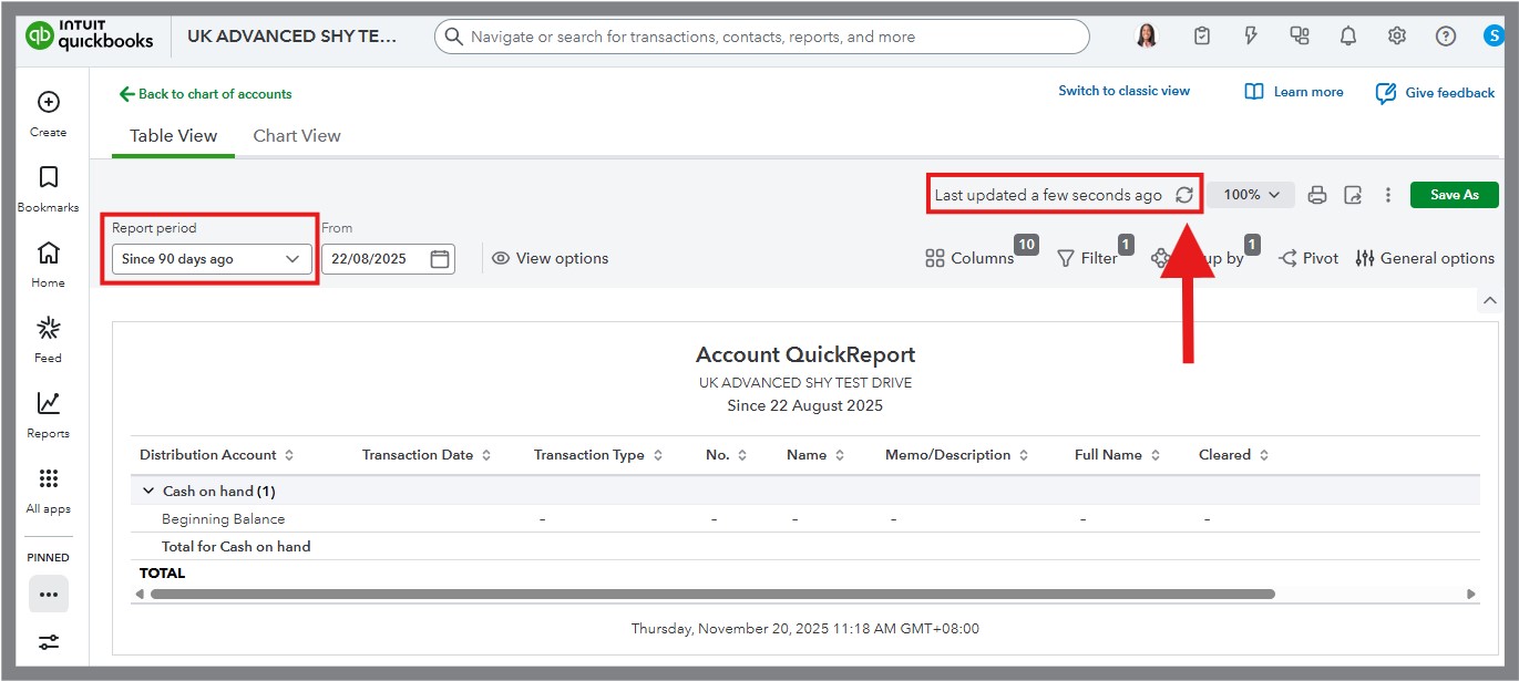 - Locate the Report period box at the top of the report screen.