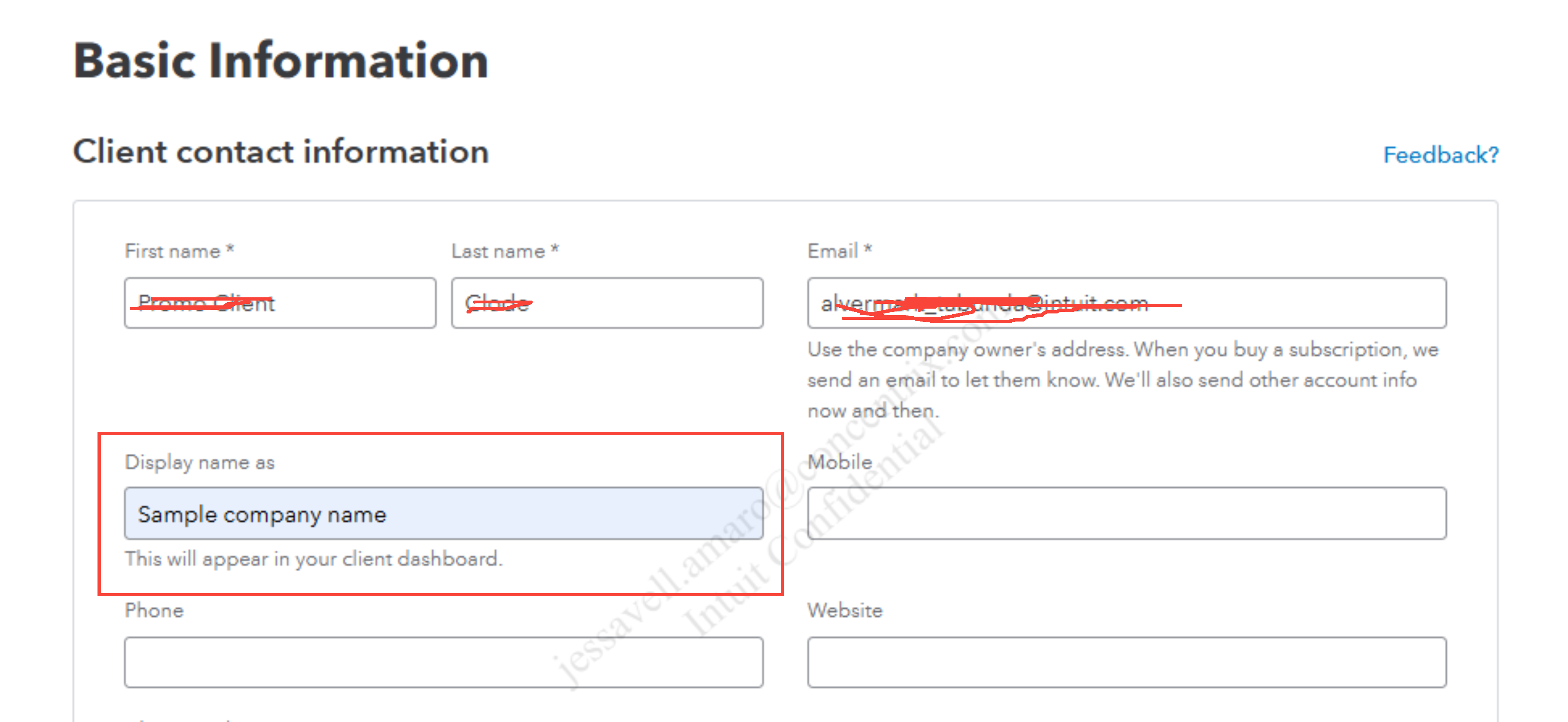 - Enter your client's company name in the Display name as field.