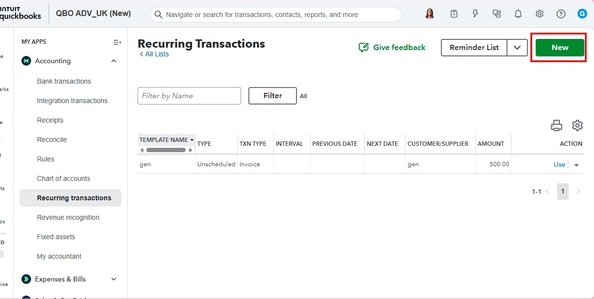 - Go to the Gear icon, then Recurring transactions.