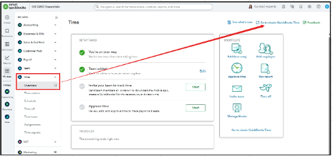 - Click Go to classic QuickBooks Time (this takes you to the full QuickBooks Time dashboard).