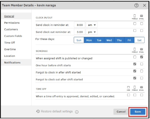 For additional details on how to fully customize these settings, including reminders and notification types, please refer to the resource Manage schedule notifications and permissions in QuickBooks Time.