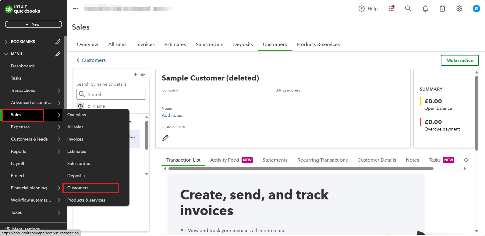 - Go to Sales, select Customers from the left-hand menu.