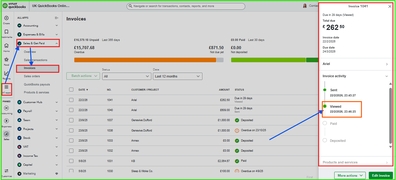 - In the My apps tab, navigate to Invoices under Sales & Get Paid.