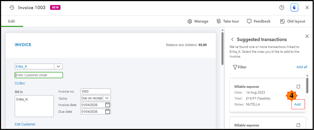 Once you’ve marked the receipt as billable, follow these steps to link it to an invoice: