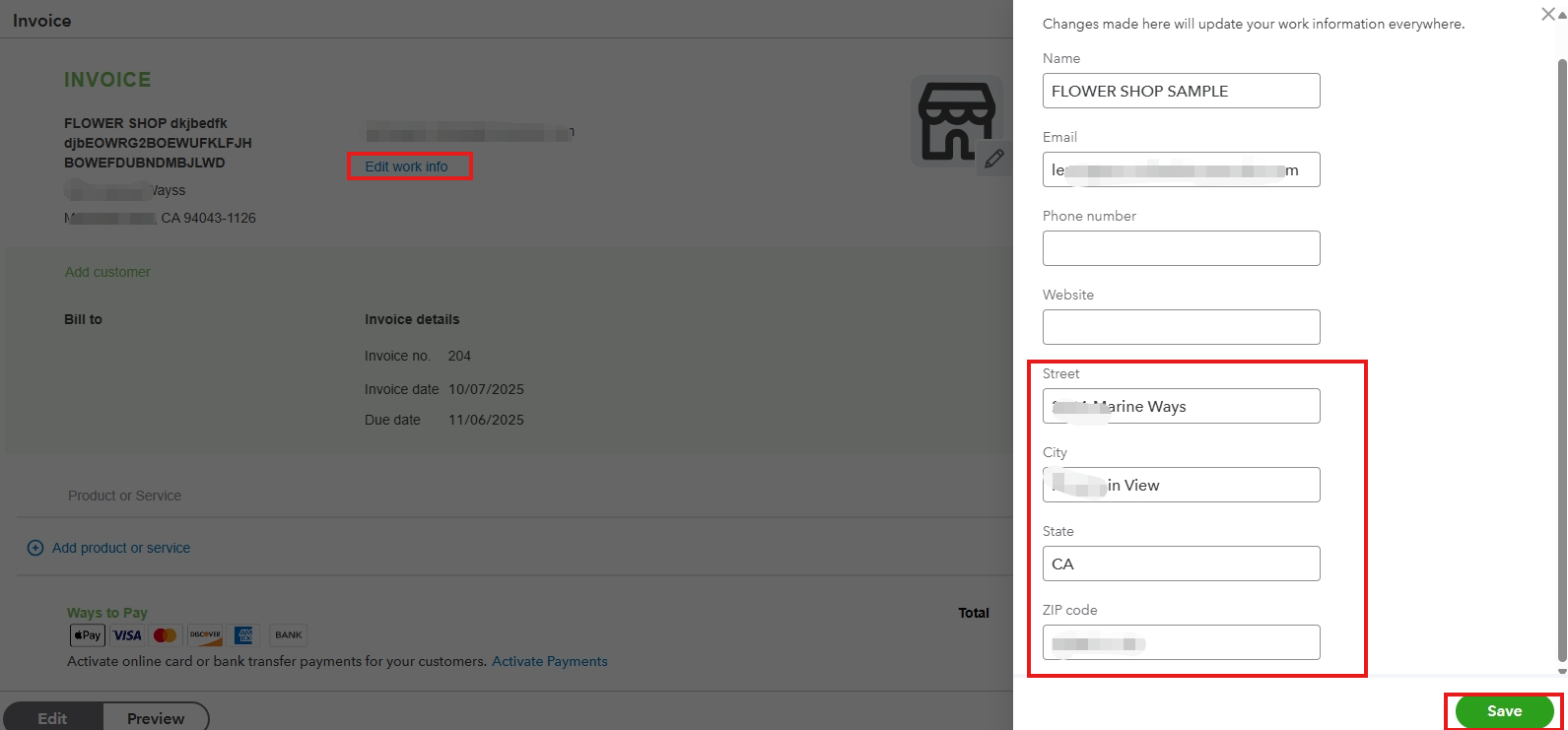 Let's ensure the changes you made to your invoice address are saved, info2773.