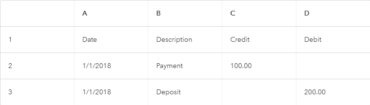 - Use only these column headers: "Amount", "Credit", or "Debit" (avoid adding extra words).