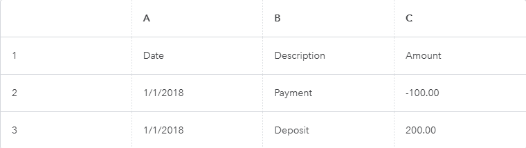 Make sure the file is properly formatted to avoid errors. QuickBooks Online accepts a 3 or 4-column format. For the 3-column format, enter the expense amount as negative. Check the list below for the general format: